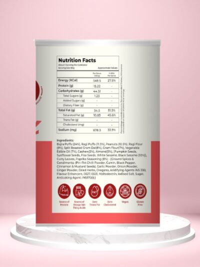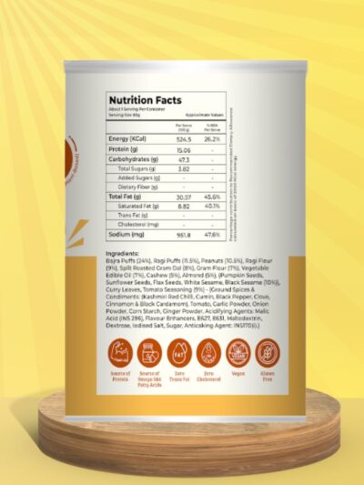 Our Millet Kurmura is crafted in-house using high-quality ragi & bajra. Light, crunchy and naturally wholesome. Packed fresh in a convenient ready-to-eat tub or tin with flavourful chutney on the side. The perfect millet-based snack for when you’re on the go.